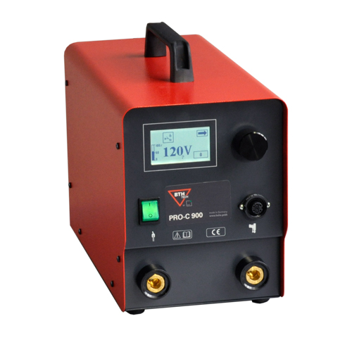De microprocessor-gestuurde lasmachine Pro-C 900 is ontworpen voor condensator-ontlading stiftlassen. Microprocessor controle en continue regeling van de laadstroom, in combinatie met de hoge capaciteit van de machine, garandeert optimale en constante lasresultaten. Door de electronisch geregelde inverter laadprint worden extreem korte oplaad-tijden, en dus hoge lassnelheden gehaald. De machine is eenvoudig te bedienen door een degelijke draai-druk knop en alle functies en parameters worden op een groot display weergegeven. De vooringestelde lasprogramma’s helpen bij de keuze van de juiste las-instellingen. Bovendien kunnen persoonlijke lasprogramma’s worden opgeslagen. De modulaire opbouw maakt het mogelijk om klantgerichte opties samen te stellen. Achteraf uitbreiding is mogelijk. Geintegreerde lasparameter-bewaking draagt bij aan de kwaliteitscontrole van de las. Standaard wordt de instelling van de laatste 10 lassen vastgelegd. Optioneel is een parameter-geheugen voor 24.500 lassen verkrijgbaar. Deze heeft tevens een USB-interface voor data overdracht (parameter-instellingen) naar een PC.